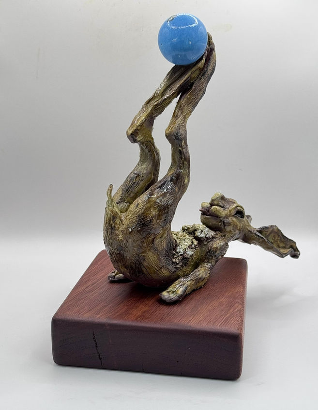 Displayed on Solid Recycled Hardwood Base (Not fixed) - 16.5x16.5x4.5cm